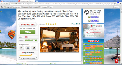 Quảng cáo khách sạn 5 sao giá khủng khiếp - Ảnh: Lê Nga (chụp lại từ màn hình) |