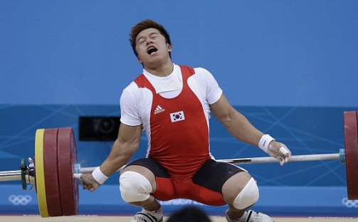Gãy tay, VĐV cử tạ Hàn Quốc ngã vật xuống sàn