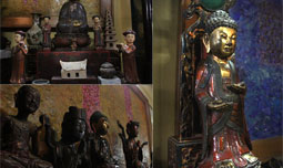 Quách Đông Phương quan niệm với tượng không phải ai cũng chơi được mà phải có căn dù anh sưu tập tượng chủ yếu để chơi chứ không phải để thờ cúng. Năm 1997, nhờ sự giúp đỡ của Đức nhà sàn, Quách Đông Phương mua lại được một căn nhà cổ ba gian, anh lấy một gian dựng lại trong nhà, biến nó thành một ngôi chùa nhỏ tại gia. Trong không gian chừng hai chục mét vuông mà có đến hơn 80 bức tượng Phật, trong đó có cả bộ tượng Tam Thánh và Tam thế rất quý. Anh bảo nhà anh đã 6 đời ở trên mảnh đất này và đất ở đây cũng phải đặc biệt lắm thì mới có chừng ấy pho tượng quý tập trung lại.