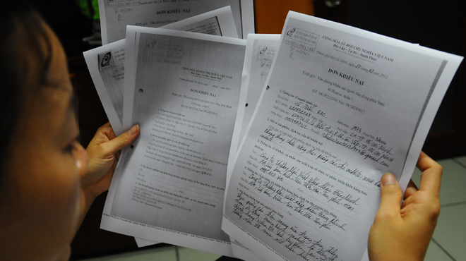 | Những lá đơn khiếu nại một số công ty kinh doanh, quảng cáo trên mạng gửi tới Văn pḥng khiếu nại người tiêu dùng phía Nam - Ảnh: T.T.D. |