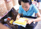 Quả thật, mua nhân bánh Trung thu làm sẵn không khó, nhưng hầu hết người bán đều rất cảnh giác. Hàng được giấu kỹ bên trong, chỉ mang ra khi khách đồng ư mua. Đến sạp cuối cùng của dăy ngành hàng mứt, chúng tôi mới được người bán đưa cho xem hơn chục gói nhựa bên trong có chất lỏng sền sệt đủ màu vàng, tím, nâu, đen… giới thiệu là nhân bánh Trung thu làm sẵn đủ loại hạt sen, đậu xanh, khoai môn, sữa dừa, lá dứa, trà xanh, cả các loại nhân cà phê, ca cao, mè đen... Người bán khẳng định “là hàng công ty đàng hoàng” nhưng các mẫu nhân bánh Trung thu làm sẵn để chào hàng chỉ là những gói nhỏ có trọng lượng khoảng 200g, loại “nhân thường”, không hề có thông tin ǵ trên bao b́. Riêng loại “nhân ngon” th́ có dán miếng giấy ghi tên loại nhân bằng tiếng Anh và tiếng Việt, bên dưới có ḍng chữ “M. VN” kèm theo số điện thoại 0613853… nhưng khi chúng tôi gọi vào số này th́ không liên lạc được (!?).