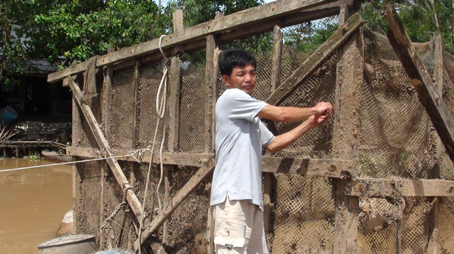 Bè cá của anh Trương Hoàng Dũng (thị trấn Mỹ Thọ, Cao Lănh, Đồng Tháp) ngưng nuôi từ nhiều tháng nay - Ảnh: NGỌC TÀI