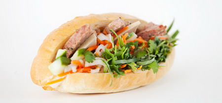 Bánh ḿ là một món ăn đường phố rất sáng tạo của người Việt Nam. Về cơ bản đó là một chiếc bánh dài làm bằng bột mỳ, bên trong nhồi các loại thịt khác nhau như thịt lợn, thịt gà, pa tê gan, xúc xích… cùng nhiều loại rau sống, củ cải, cà rốt, dưa chuột… và các loại gia vị khác nhau. Món ăn này là một sự pha trộn hài ḥa của nhiều hương vị hấp dẫn.