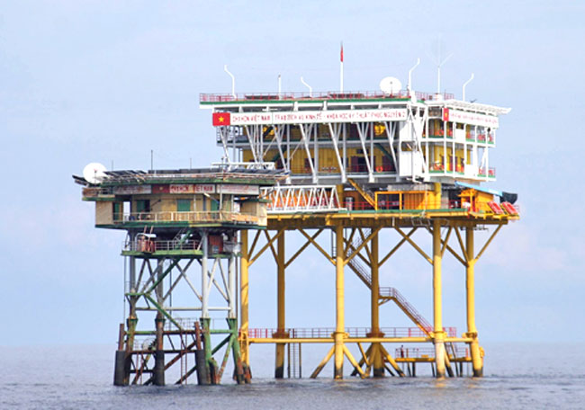 Vượt qua mọi khó khăn, nhà giàn được dựng lên, hiên ngang giữa lòng biển Đông tạo thành phên giậu bảo vệ chủ quyền lãnh thổ từ hướng biển. Trong ảnh là công trình DK1/2 được xây dựng trên bãi Phúc Tần A (tỉnh Bà Rịa-Vũng Tàu)