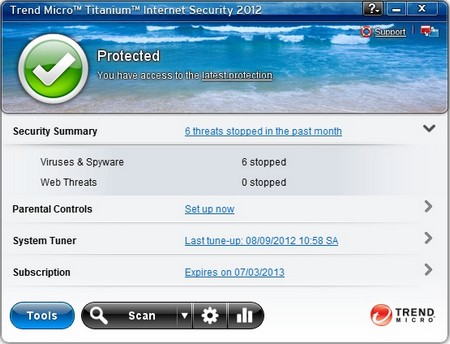 - Sau khi hoàn tất các bước đăng ký, bạn đã có thể sử dụng Trend Micro Titanium Internet Security 2012 tới tận tháng 3 năm sau, nghĩa là 6 tháng bản quyền đầy đủ, thay vì chỉ 1 tháng như phiên bản sử dụng thử thông thường.