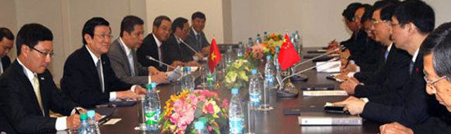 - “Chủ tịch nước Trương Tấn Sang và Tổng Bí thư, Chủ tịch nước Hồ Cẩm Đào cho rằng trong t́nh h́nh hiện nay, việc không ngừng tăng cường sự tin cậy về chính trị, làm sâu sắc hơn nữa quan hệ đối tác hợp tác chiến lược toàn diện Việt nam – Trung quốc có ư nghĩa hết sức quan trọng”.
