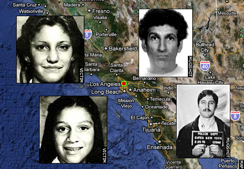| Tên sát nhân máu lạnh Kenneth Bianchi (nam, dưới cùng bên phải) và Angelo Buono (nam, trên cùng bên phải) và hai trong số các nạn nhân của chúng. |