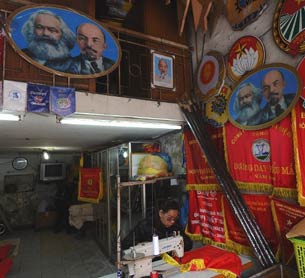 Một cửa hàng bán hàng tuyên truyền chính trị có cả chân dung của nhà lănh đạo cộng sản Karl Max, Lenin tại Hà Nội hôm 01 tháng 2 năm 2012