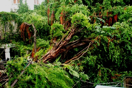 Cây si cổ thụ bật gốc, đè loạt xe máy, bịt lối đi