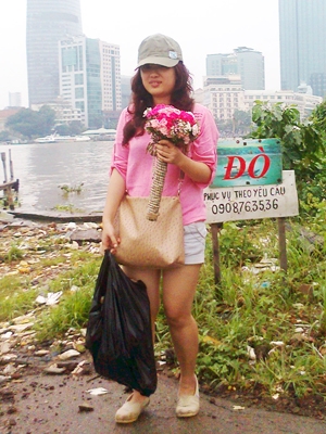 Du khách chụp ảnh lưu niệm bên bến phà Thủ Thiêm (Ảnh chụp ngày 30-9-2012) .