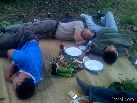 Chiến trường la liệt những lon đã hết được rải khắp phòng, mùi bia xông lên nồng nặc, trên bàn ngổn ngang thức ăn thừa và cả bia thừa nữa. Số còn lại quyết định đi uống tiếp. Vừa bước ra cửa, một anh bạn của tôi nôn thốc nôn tháo ngay trước mặt mọi người, tôi nhìn thấy chợt tỉnh cả người và quyết định đi về.