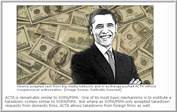 3) SOPA & ACTA : SOPA came from Lamar Smith - a Republican from TX. ACTA came out of international trade agreements on intellectual property rights.
