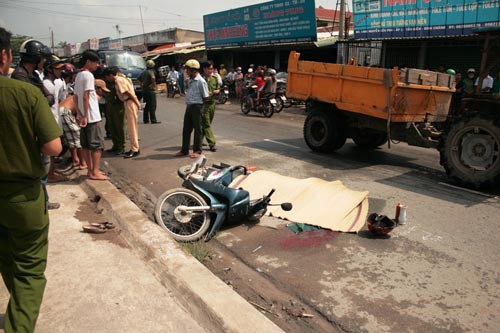 Giật mình vì tiếng còi, bị xe tải cán chết