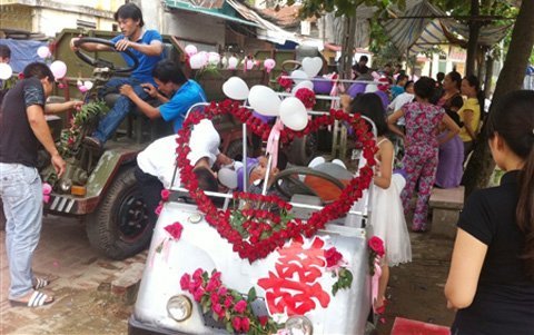 Lễ rước dâu bằng xe công nông ở Hà Nội