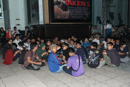 Hàng trăm người xếp hàng trước quầy bán Galaxy Note II (Ảnh: Nguyễn Chí Thành)
