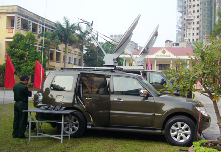 Xe VSAT VCD cơ động, bảo đảm truyền dẫn các tín hiệu truyền hình, thoại, truyền số liệu qua vệ tinh địa tĩnh Vinasat 1