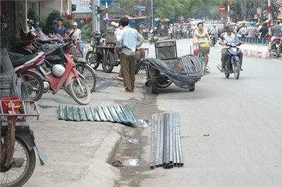 Thực ra các cửa hàng kinh doanh sắt này không phải tự nhiên “mọc ra” trên vỉa hè mà chủ yếu người dân từ nơi khác tới thuê nhà ở ven đường đó hoặc chính các hộ dân ở đó người ta kinh doanh. Sau đó, người ta có lấn chiếm một phần vỉa hè chứ không phải họ sử dụng toàn bộ vỉa hè để kinh doanh.