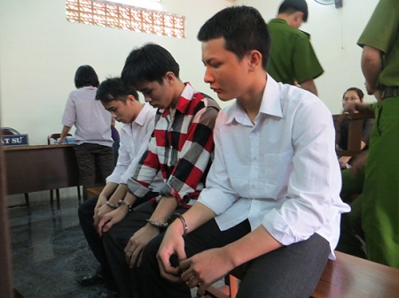 Ba bị cáo Chơn, Lộc và Chất trong phiên ṭa sơ thẩm.