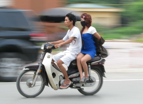 Thiếu nữ Hà Nội thích đi xe máy đầu trần