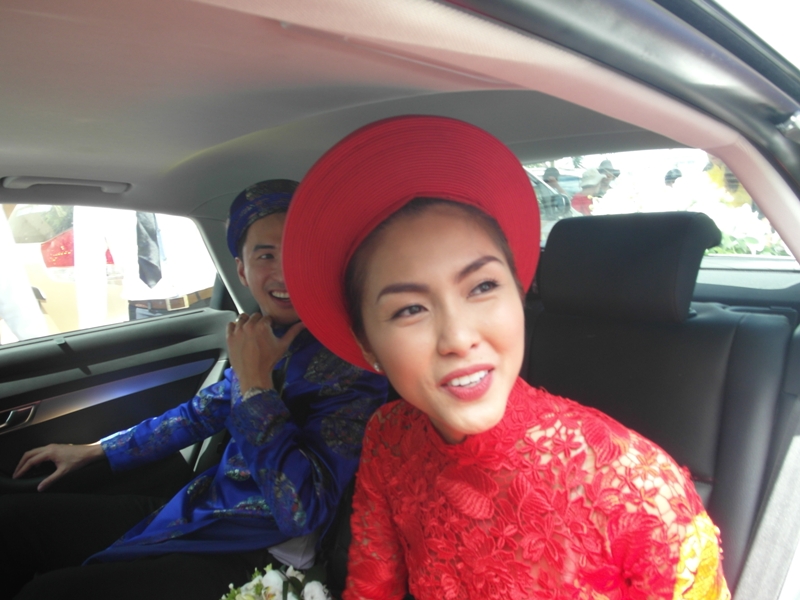 Tăng Thanh Hà mở cửa xe cô dâu nói xin lỗi phóng viên