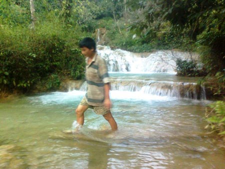 “Anh muốn xem thác bản Hiêu thì nó nằm ngay cạnh đây thôi” - Lý vui vẻ nói, rồi đi trước về phía con suối. Ẩn sau lùm cây, một thác nhỏ với dòng nước trong xanh đang đẩy những dòng nước bạc xuống tầng dưới, đẹp tuyệt vời.