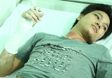 Bị công an đánh găy tay v́ không đội mũ bảo hiểm?