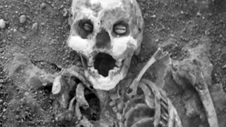 Khi đào được hơn 50cm, ông Chung thấy ló ra vài ba đốt đen đen, gần giống xương gà, lợn. Biết là sắp phát lộ bộ hài cốt như lời đồn đại, ông bèn cho nhân công phủ bạt lên để người dân đỡ sợ và nói đùa rằng đó chỉ là xương động vật chết trong hang.