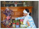 Mẹ và chị gái thắp nhang trên bàn thờ cháu Phan Thị Chính