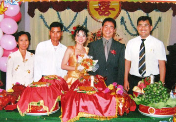 Phương cùng chồng trong ngày cưới. Ảnh chụp lại từ ảnh gia đình cung cấp