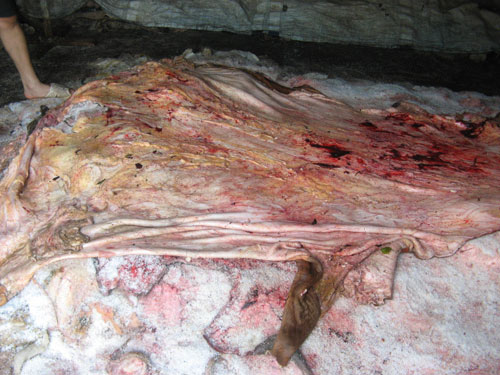 | Những đống da trâu bò vừa nhập về, ruồi nhặng bu đầy |