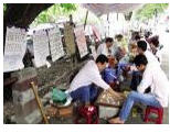 Ông Nguyễn Hữu Long - chủ quán nước và kiêm nhà thơ - cho biết, ông bắt đầu bán nước từ tháng 4/2012. Thời gian đầu mới mở quán, v́ ít khách nên ông lấy mấy tờ tranh, lịch ra chép lại những bài thơ do chính ông sáng tác lên mặt sau rồi cẩn thận treo lên hàng rào lưới sắt để... tự thưởng thức. Không ngờ nhiều người đi đường thấy lạ dừng xe ghé vào uống nước và đọc thơ. Càng ngày lượng khách càng đông, họ không chỉ đọc, cảm nhận, phân tích rôm rả mà c̣n góp ư những câu, từ theo họ là chưa hay; khuyên ông nên thay sao cho hợp lư và hay hơn...