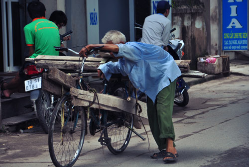 Mới đi tới đầu thôn Đức Diễn, xã Phú Diễn, Từ Liêm, Hà Nội hỏi thăm ông Bùi Văn Chử (sinh năm 1933), từ trẻ nhỏ cho tới người trung tuổi rồi người già đều chỉ cho chúng tôi ngôi nhà 2 tầng có nhiều ván gỗ dựng ngoài sân, ngoài ngõ kèm theo cái cười chua chát: “Ông ấy có đi ăn xin đâu. Tự ông ấy đẩy xe đi tìm ván gỗ về đun ấy chứ. Con cái nhiều lần giấu xe đạp không cho ông ấy đi nhưng ông ấy lại làm um lên. Giờ mà vào nhà hỏi thăm ông Chử chắc chắn sẽ bị vợ con ông ấy đuổi ra ngoài đấy. Nhà ông ấy được đền bù đất nên cũng có của ăn của để”.