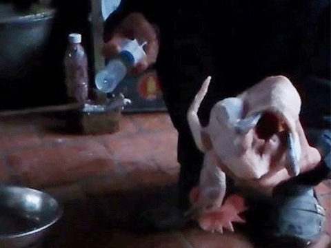 | GÀ được bơm nước béo lên rất nhanh. |