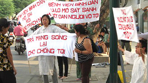 Góa phụ mặc đồ tang khiếu nại ngành y tế