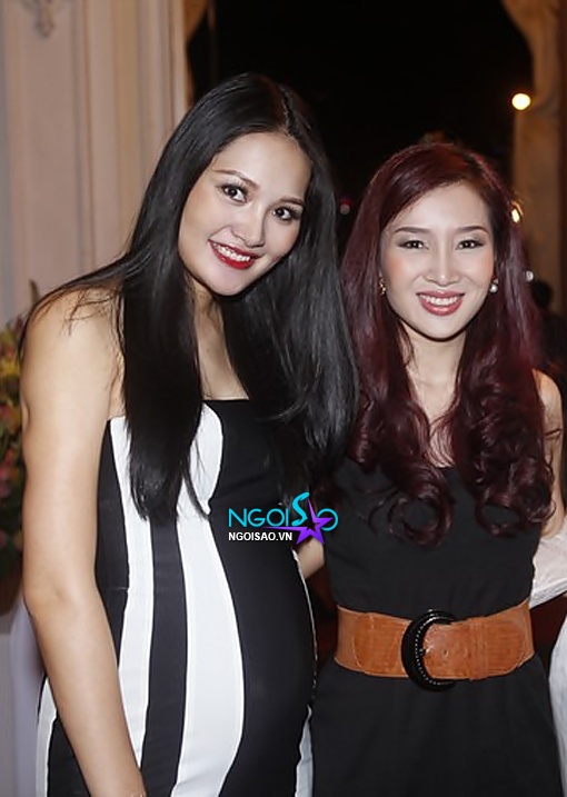 Hoa hậu Hương Giang "khoe" bụng bầu 8 tháng với váy ôm sát