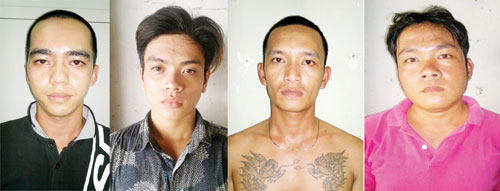 Từ trái qua gồm Tòng, Trung, Tý "em" và Sơn đang bị truy nã - Ảnh do Công an TX. Thuận An cung cấp |