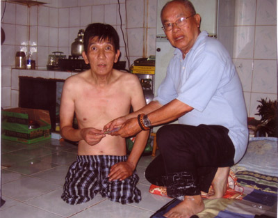 Ông Dương Quang Lạc đến thăm và trao quà cho TB Nguyễn Văn Phúc ở quận 1 Saigon. (Hình: DLF cung cấp)
