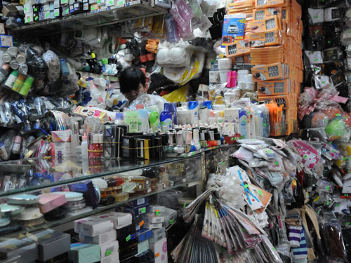 Mỹ phẩm bán trên thị trường phần lớn nhập từ Trung Quốc. Ảnh chụp tại một chợ ở TPHCM. Ảnh: HỒNG THÚY