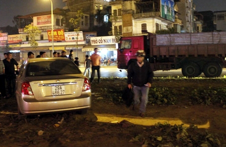 Bị đâm từ phía sau, "xế hộp" lao lên dải phân cách