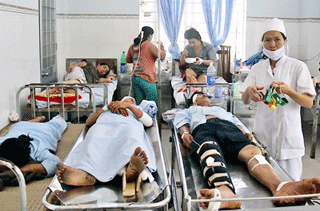 | Các nạn nhân đang được điều trị tại Bệnh viện Cam Ranh. |