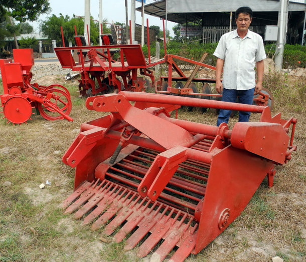 Ông Hải và chiếc máy đào củ mì do mình sáng chế - Ảnh: N.Hậu