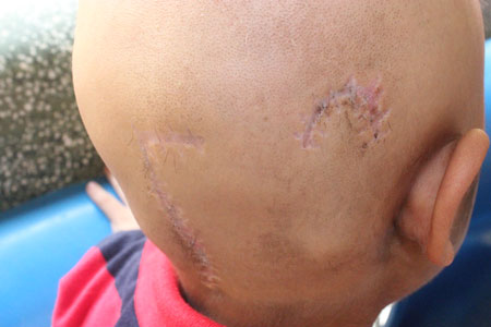 “Cháu nó có tội tình gì đâu mà trời lại bắt tội ?! Đang yên đang lành, lại là một học sinh giỏi toàn diện ở lớp thì đùng một cái cháu ngã quỵ vì bệnh u tiểu não ác tính. Để giữ được tính mạng cho đến giờ, cháu đã trải qua 2 lần phẫu thuật khối u ở não, nhưng căn bệnh vẫn đang rất nguy hiểm”, chị Hương sụt sùi.