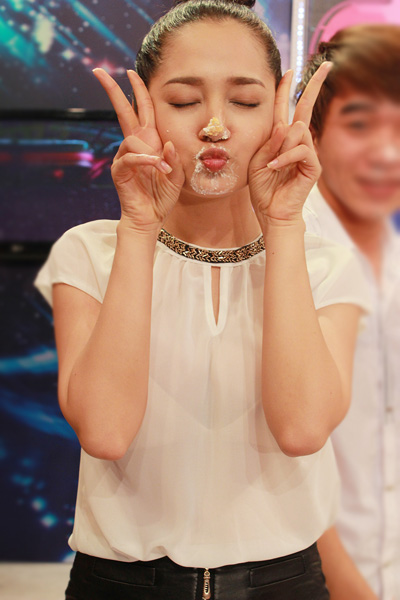 Bảo Anh mặt mũi 'tèm lem' bánh kem