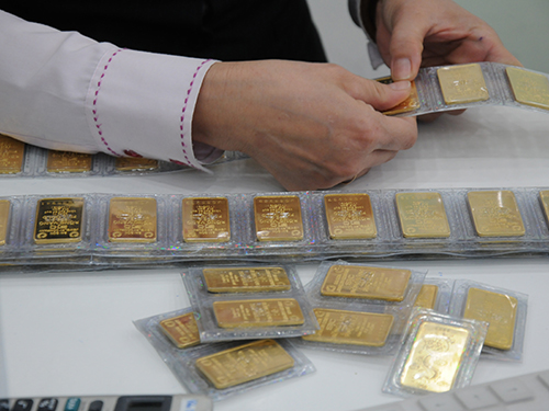 Ngày 29-3, giá vàng trong nước lại bị đẩy cao hơn giá thế giới 3,4 triệu đồng/lượng. Ảnh: HỒNG THÚY