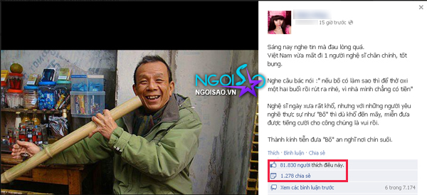 Hơn 80 ngàn người "xúc động" trước lời tiễn đưa NS Văn Hiệp của Minh Hằng