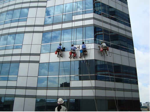 Một nghề khác là lau cửa kính nhà cao tầng cũng không kém phần nguy hiểm. Do lau kính bằng phương pháp thủ công nên mất rất nhiều thời gian, công sức và rất nguy hiểm cho tính mạng khi công nhân thường xuyên phải làm việc trên cao.