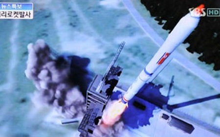 | H́nh ảnh vụ phóng tên lửa hôm 12/12 của Triều Tiên. Ảnh chụp từ vệ tinh.(Ảnh Getty Images) |