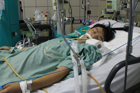 Bị cúm H1N1, em lại được chuẩn đoán bị viêm phổi và suy đa tạng nên t́nh cảnh hết sức nguy kịch. Hiện tại đang cấp cứu tại khoa Điều trị tích cực của bệnh viện Bạch Mai, tính mạng của cậu thanh niên 23 tuổi đang được tính bằng giây, bằng phút.