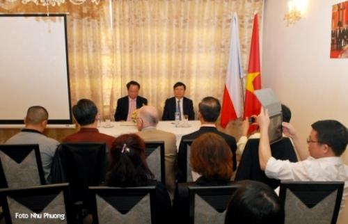 Cuộc họp tại ĐSQ VN. Ông Đại sứ cùng chủ tịch HNVN trủ trì cuộc họp. Ảnh: Như Phương.
