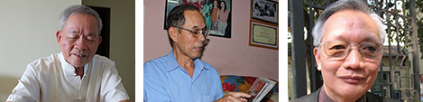 Từ trái qua: Thuyền trưởng Nguyễn Văn Đức, thuyền trưởng Nguyễn Xuân Thơm và cựu binh Đào Mạnh Hồng kể lại chuyện giải phóng Trường Sa. Ảnh: PHAN ANH - MẠNH DUY